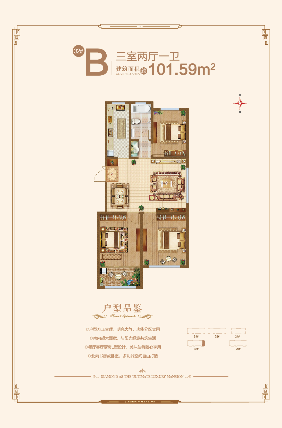 青州金庆御花园3室2厅1厨2卫 93.16万起