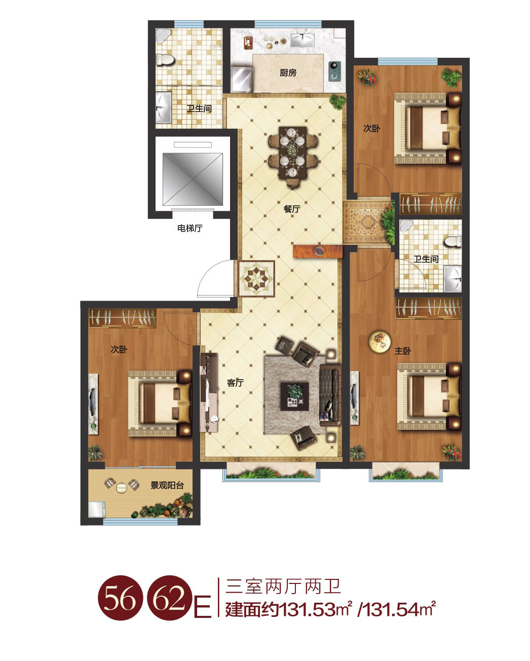 建面:131.53 ㎡ 6800 元/㎡